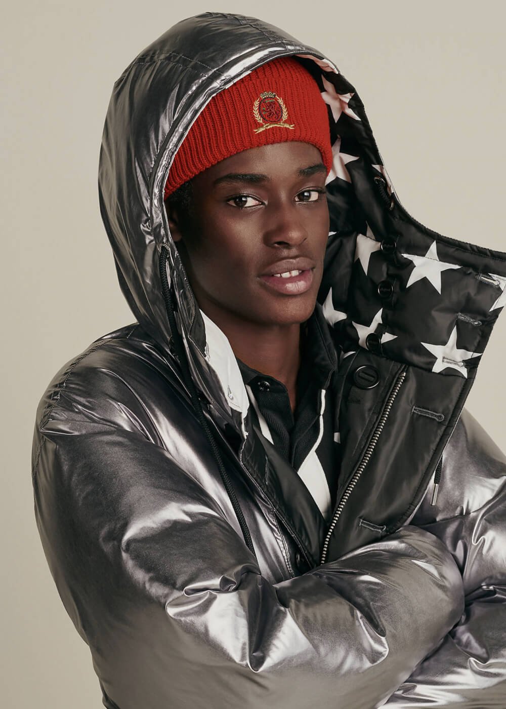 - • hood with drawstring